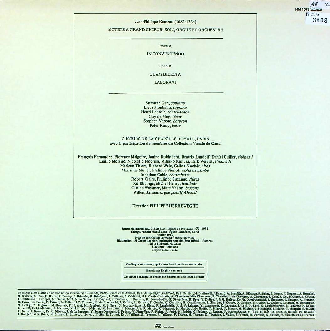商品コード:REG-3808[仏HM] P.ヘレヴェッヘ/ ラモー:モテット「主がシオンの繁栄を回復したもう時」 他