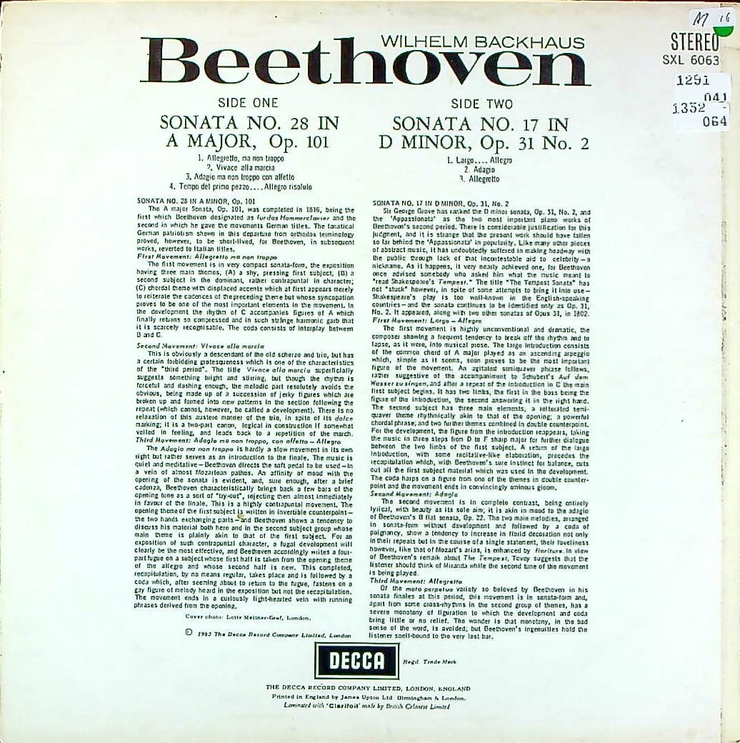 商品コード:1352-064[DECCA] W.バックハウス(pf) / ベートーヴェン:Pfソナタ28番, 17番