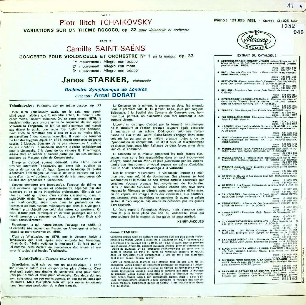 商品コード:1352-040[MERCURY] J.シュタルケル(vc)/ チャイコフスキー:ロココ変奏曲, サン・サーンス:Vc協奏曲1番