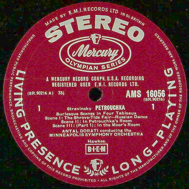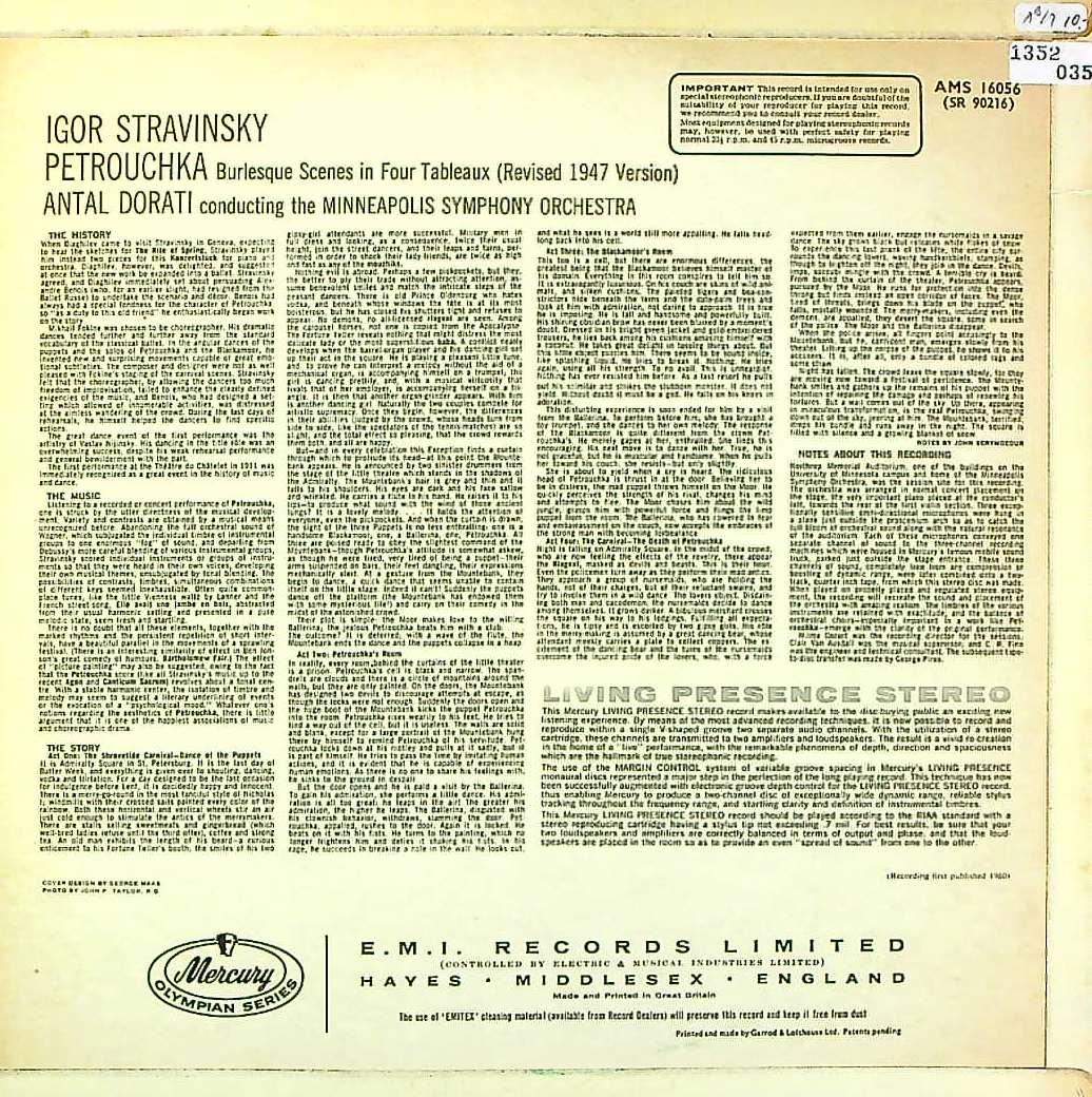 商品コード:1352-035[MERCURY] A.ドラティ/ ストラヴィンスキー:ペトルーシュカ(1947年改訂版)