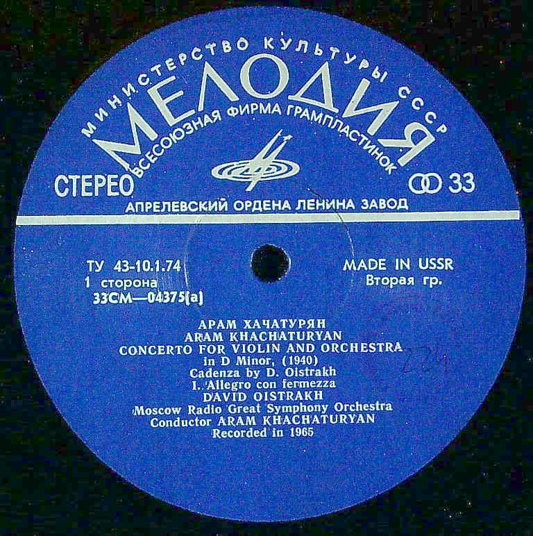 商品コード:1352-032nb[MELODIYA] D.オイストラフ(vn) A.ハチャトゥリアン/ ハチャトゥリアン:Vn協奏曲