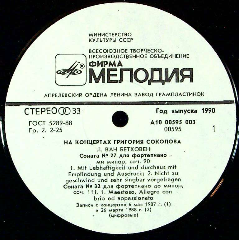 商品コード:1352-026n[MELODIYA] G.ソコロフ(pf) / ベートーヴェン:Pfソナタ27番, 32番