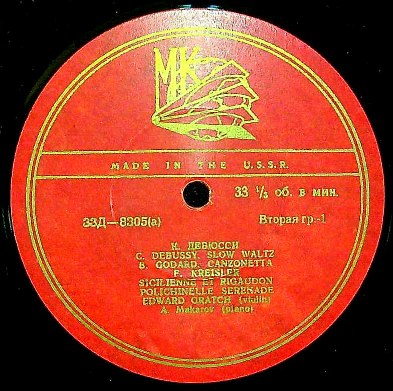 商品詳細:エドゥアルド・グラチ(1930-)はオデッサ生まれのウクライナ人ヴァイオリン奏者。6歳からベンジャミン・モルドコヴィチにヴァイオリンの手ほどきを受け、ピョートル・ストリャルスキーの薫陶も受けた。第二次世界大戦中はノヴォシビルスクでジョセフ・ガットマンの教えを受けている。1944年からモスクワ音楽院付属中央音楽学校でアブラム・ヤンポリスキーのクラスに入り、1953年にはモスクワ音楽院に進む。1956年にヤンポリスキーが亡くなると、先輩であるダヴィッド・オイストラフから1958年まで指導を受けた。1949年バルトーク・コンクールで最優秀賞を受賞。1955年ロン・ティボー国際コンクール3位、1962年チャイコフスキー・コンクール5位という成績を残す。1953年から活動を始め、1964年にはマリーニン、シャホフスカヤとPfトリオを結成。1979年からは指揮者としても活動を始め、1980年にはヴィオラ奏者としての活動も行うようになった。1960年代から録音がある。教育者としては1989年から母校のモスクワ音楽院で教鞭を執り、1990年から同音楽院教授、1995年から1998年まで同音楽院のヴァイオリン科主任教授を務めた。1990年にはムジコヴィ室内管弦楽団を結成して音楽監督となった。これは1950年代の初期録音の小品集で非常に珍しい10"。クライスラー編曲なども交え、有名な作品を中心とするも、マルセル・ドラノワ( 1898- 1962)の「黒人の子供の踊り」は初めて聴く曲で面白い。A面に3曲、B面に4曲と計7曲入りの洒落た小品集。グラチはオイストラフやコーガンと比べ知名度こそ低いが重要な旧ソ連時代のVn奏者でこのような小品集を録音できる奏者はさほど多くないだけに貴重である。抑えた軽度のヴィヴラートでメロデイーを素直に弾いて感銘を与える才能があるようだ。よく通るストレートな音で勝負している。メジャー協奏曲よりソナタなどで実力を発揮するタイプかもしれない。豊かな表現力を持ち、音は適度に美しく、適度に太い。但しロシア系にイメージされる野太い音を持った奏者ではない。哀愁のある音がドビュッシーを弾いても野暮ったさを感じさせない。古き良き色彩を持つ隠れた名手、エドゥアルド・グラチ!外せないロシアのヴァイオリン奏者!この10"はグラチの数枚ある小品集の中でも特別希少な1枚!
