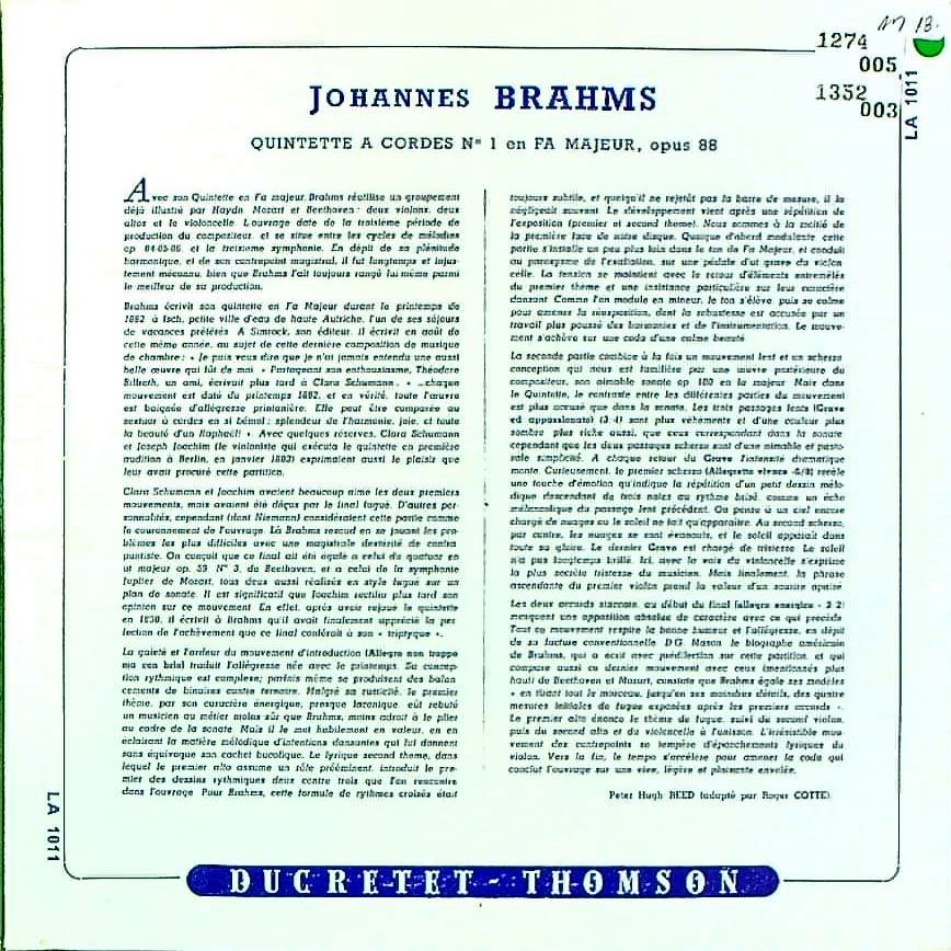 商品コード:1352-003[Ducretet Thomson] ウィーン・コンツェルトハウスQt. F.シュトラングラー(va) / ブラームス:弦楽五重奏曲1番