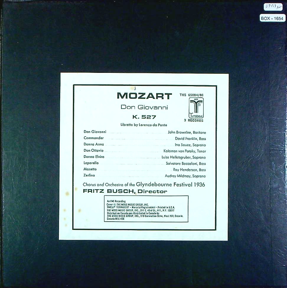 商品コード:BOX-1654[米TURNABOUT] F.ブッシュ/ モーツァルト:ドン・ジョヴァンニ(全曲)