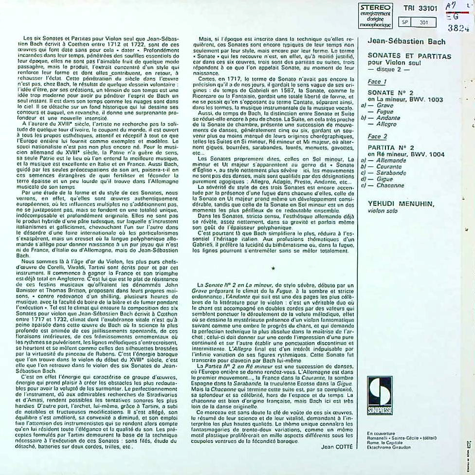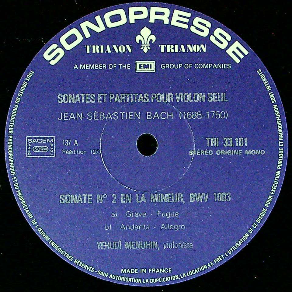 商品コード:REG-3824[仏TRIANON] Y.メニューイン(vn) / バッハ:無伴奏Vnのためのソナタとパルティータ~ソナタ2番, ~パルティータ2番