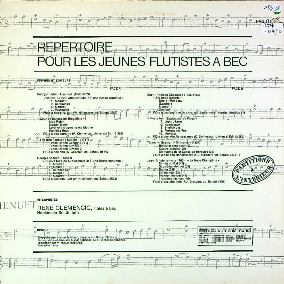 商品詳細:1970年代仏Harmonia Mundiでは器楽シリーズ「若い○○のためのレパートリー」を各楽器ごとに企画していた。ピアノは全4枚で最も充実していたが、他にも○○には、ヴァイオリン、チェロ、ギター等があり、クラリネットもあった。ピアノ以外はほぼ2枚で完結とした。今回初めて「若いフルーティストのためのレパートリー」のVol.1が初入荷したので紹介する。フルートはレネー・クレメンチッチが担当。伴奏はリュートのホプキンス・スミスが担当。レネー・クレメンチッチ( 1928 - 2022)はオーストリア生まれの古楽奏者で指揮者。ポジティヴオルガン、チェンバロ、リコーダー、シャルマイなどを受け持ち、指揮する。クレメンチッチ・コンソートは1957年にクレメンチッチにより創設した古楽作品専門の歌手を含む古楽アンサンブルである。カルミナ・ブラーナのオリジナル・ヴァージョン全300曲をMHに録音しLP5枚でリリースしたことで知られる古楽専門の音楽家である。意外にも指揮者を本業とするクレメンチッチが「若いフルーティストのためのレパートリー」にリコーダー奏者として登場している。意外な出演に驚いたのは筆者だけではないだろう。リコーダー奏者としての腕前をここで披露している。フルーティストというタイトルだがリコーダーもフルートの一つであり、古楽ならば横笛(トラヴェルソ)より縦笛(リコーダー)の登場となるだろう。マンロウやマルゴワール等古楽系指揮者の多くがリコーダーをたしなむことが多いが、クレメンチッチは全くプロの腕前を持ち、クイケンのようにリコーダー奏者だけでもやっていけるレベルである。Vol.2との2枚セットで出したかったが、Vol.2は1度も入荷のない希少タイトルであり、Vol.1も当社初入荷の希少盤である。若い音楽家のための練習用として企画されたシリーズだが、特にこのリコーダー編はプロ顔負けの高いレベルで玄人好みの曲も混じり、聴き応えのある内容になっている。フルート奏者の小品集の域を越えるLPとなっている。クレメンチッチの多彩な演出による演奏で飽きることのないリコーダーの世界が楽しめる。楽器は曲ごとにアルト・リコーダー、ソプラノ・リコーダーを使い分ける。殆ど聴いたことのない古楽作品ばかり。