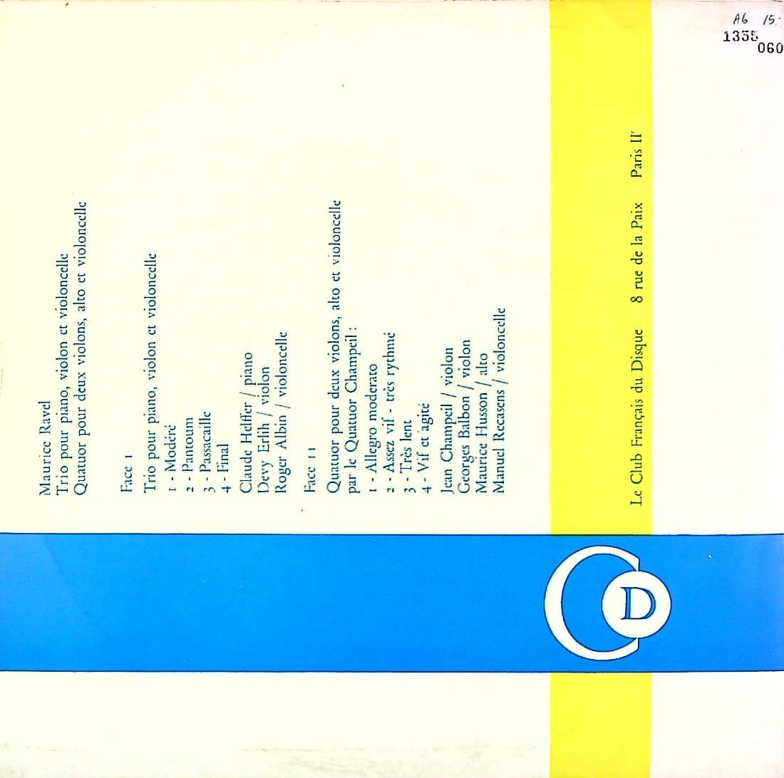 商品コード:1355-060b[Club Français] C.エルフェ(pf) D.エルリ(vn) R.アルバン(vc)/シャンペイユQt. / ラヴェル:Pfトリオ, 弦楽四重奏曲