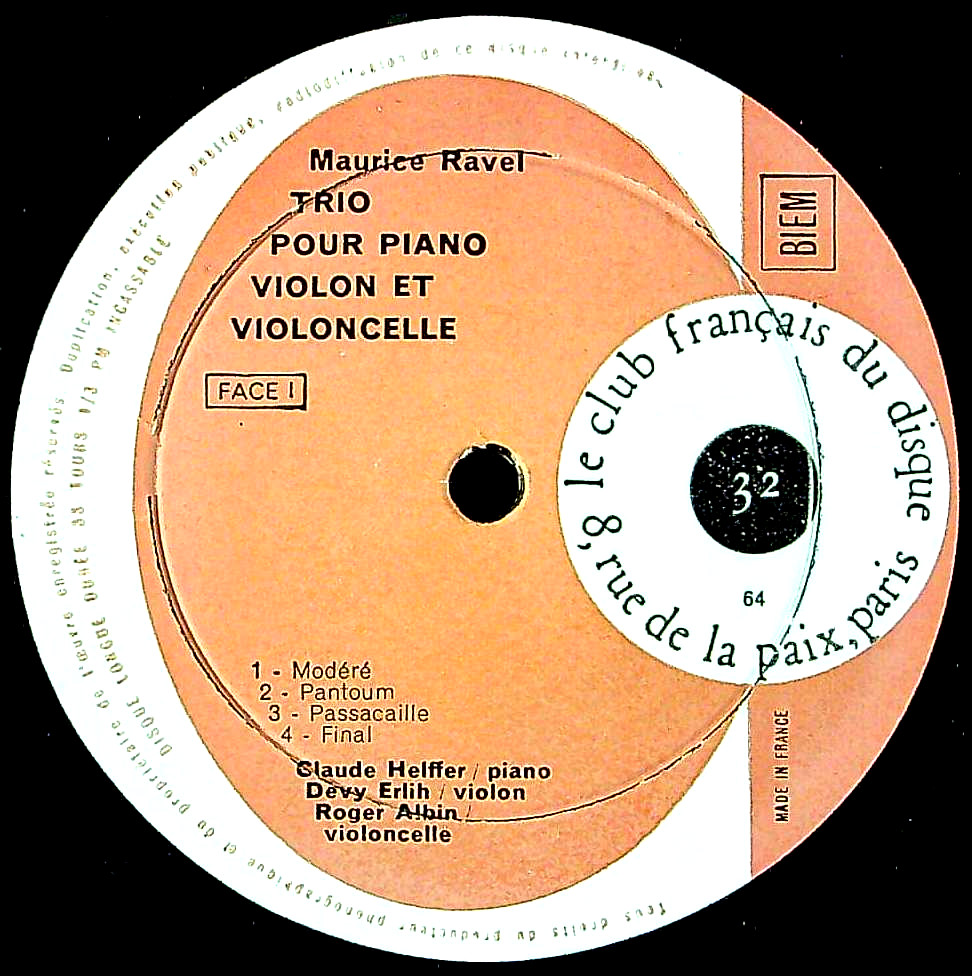 商品コード:1355-060[Club Français] C.エルフェ(pf) D.エルリ(vn) R.アルバン(vc)/シャンペイユQt. / ラヴェル:Pfトリオ, 弦楽四重奏曲