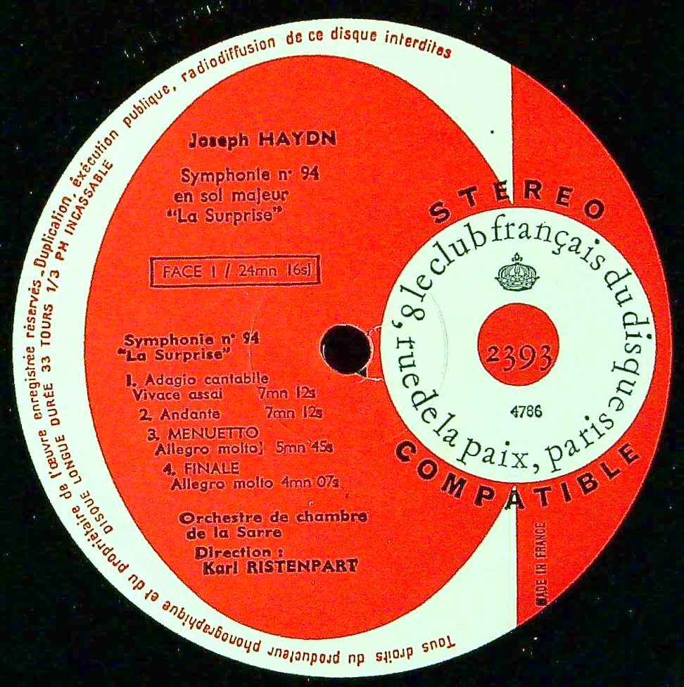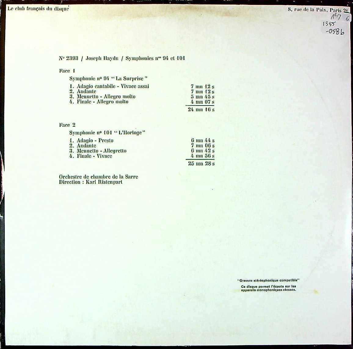 商品コード:1355-058b[Club Français] K.リステンパルト/ ハイドン:交響曲94番「驚愕」, 101番「時計」
