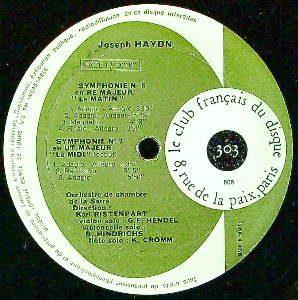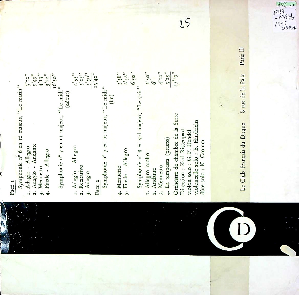 商品コード:1355-054pb[Club Français] K.リステンパルト/ ハイドン:交響曲6番「朝」, 7番「昼」, 8番「夕べ」