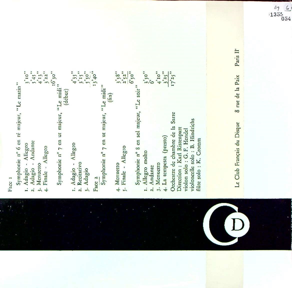 商品コード:1355-054[Club Français] K.リステンパルト/ ハイドン:交響曲6番「朝」, 7番「昼」, 8番「夕べ」