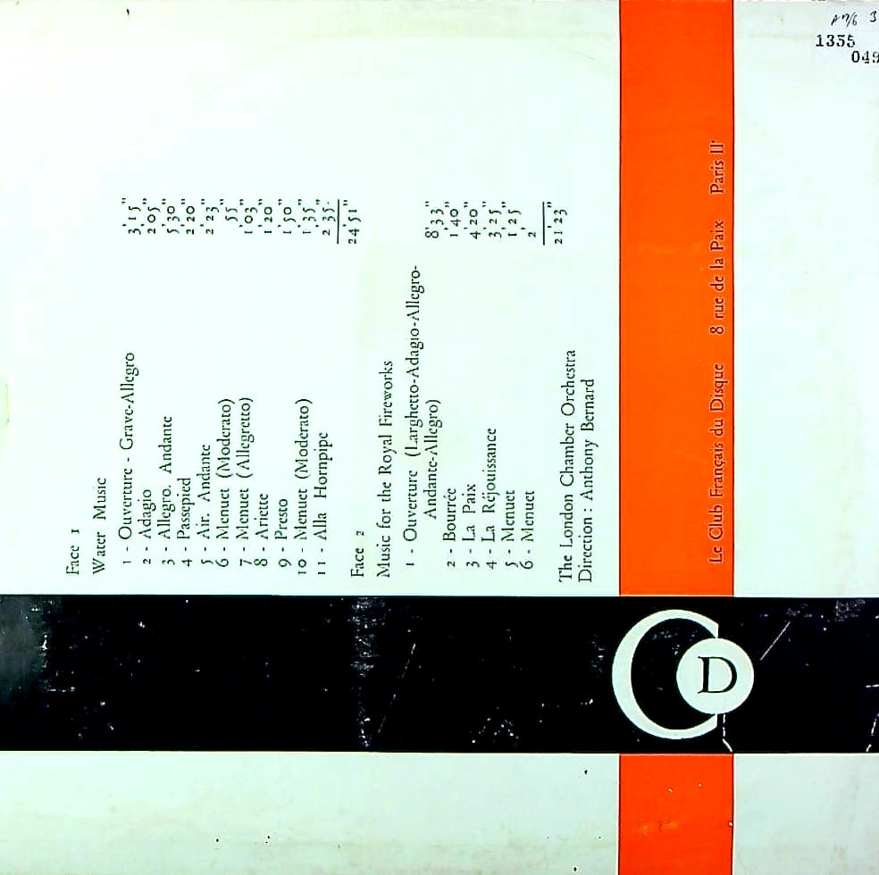 商品コード:1355-049[Club Français] A.バーナード/ ヘンデル:水上の音楽, 王宮の花火の音楽