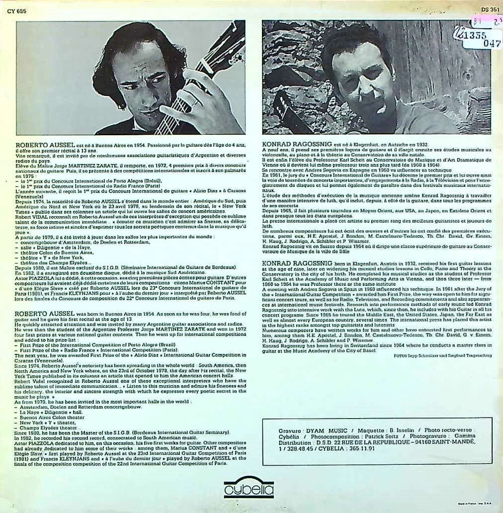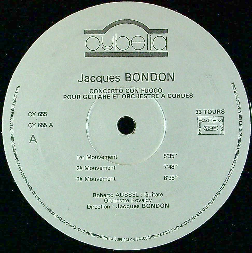 商品詳細:ジャック・ボンドン(1927-2008)はフランス・ブーシュ=デュ=ローヌ県ブルボンの生まれ。パリ音楽院でヴァイオリンを始め、ジョルジュ・ダンドロ、シャルル・ケクランから和声法と対位法を、ダリウス・ミヨー、ジャン・リヴィエから作曲法を学んだ。1962年に現代音楽室内管弦楽団(OCMC)を設立。6年後にアンサンブル・モデルヌ・ド・パリ(EMP)となった。1974年、文化省の国立ポピュラー音楽委員会の委員に任命。1981年よりパリ20区の市立音楽院の院長を務めている。ボンドンは器楽と管弦楽の作品を多く作曲していて、ギターを伴う協奏曲は2曲ある。B面の1966年作「火星協奏曲」は、ここでの演奏と同じくK.ラゴスニックが.ボンドン指揮コンセール・ラムルーo.と1960年代にRCAに初録音している。おそらく初演も同じメンバーと思われる。これは2回目録音と思われる。SF映画に使われそうなテーマの作品だが、曲もやはりスペクタクルを狙った種類の曲である。何故ソロがギターなのか不思議な印象の協奏曲。ギターソロが入ると一気に幻想的な雰囲気になる。やはり全体に未来志向の気分が満載の作品。A面の協奏曲コン・フオコはイタリア語で火を意味する、「火の協奏曲」という意味だろう。1981年という新しい作品。恐らくこれがLP初録音と思われる。こちらのギターはロベルト・オーセル(1954-)でアルゼンチン生まれのギター奏者。地元の音楽院で巨匠ホルヘ・マルティネス・サラテに師事。アリリオ・ディアスの国際ギターコンクールなど、世界で最も権威あるコンクールのいくつかで優勝した。現在、オーセルはドイツ・ケルン音楽大学で教鞭を執っている。アストル・ピアソラはギターのための 5 つの小品をオーセルに献呈してる。2曲とも如何にも現代作品という風情である。但し、ジャック・ボンドンのGt協奏曲が2曲もLPに収録されたことは後にも先にもこの1回だけと思われる。