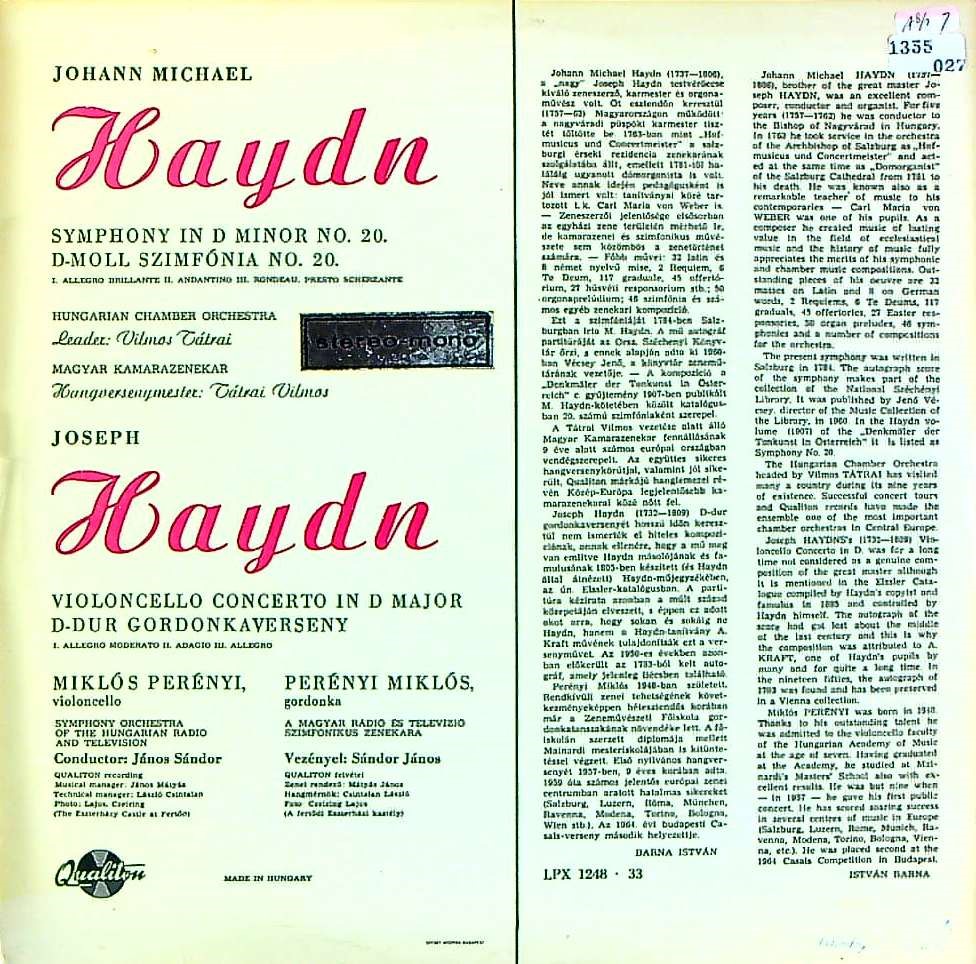 商品コード:1355-027t[QUALITON] M.ペレーニ(vc) /V.タートライ/ ハイドン:Vc協奏曲2番, M.ハイドン:交響曲20番