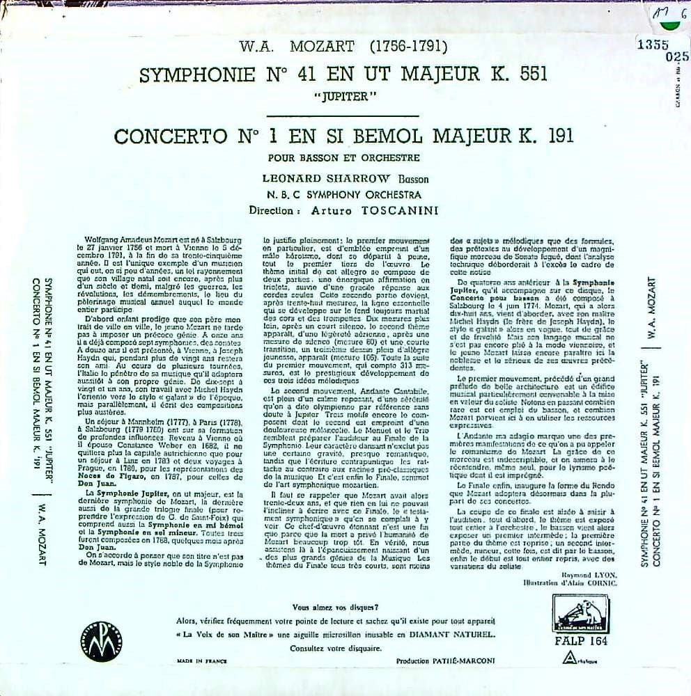 商品コード:1355-025[VSM] A.トスカニーニ/ モーツァルト:交響曲41番K.551「ジュピター」, Fg協奏曲K.191