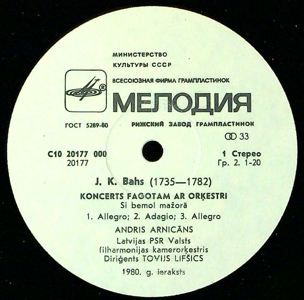 演奏者:A.アルニカーンス(fg)T.リフシッツ指揮ラトビア国立室内o.(A面)/L.ブリーデ(vc)V.シナイスキー指揮ラトビア国立so.(B面)