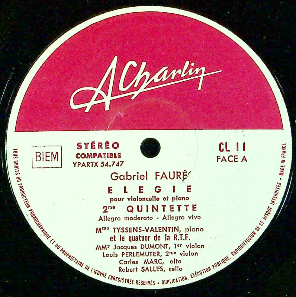 商品コード:1356-058[Charlin] G.ティッサン・ヴァランタン(pf) ORTFQt./ フォーレ:エレジー, Pf五重奏曲2番