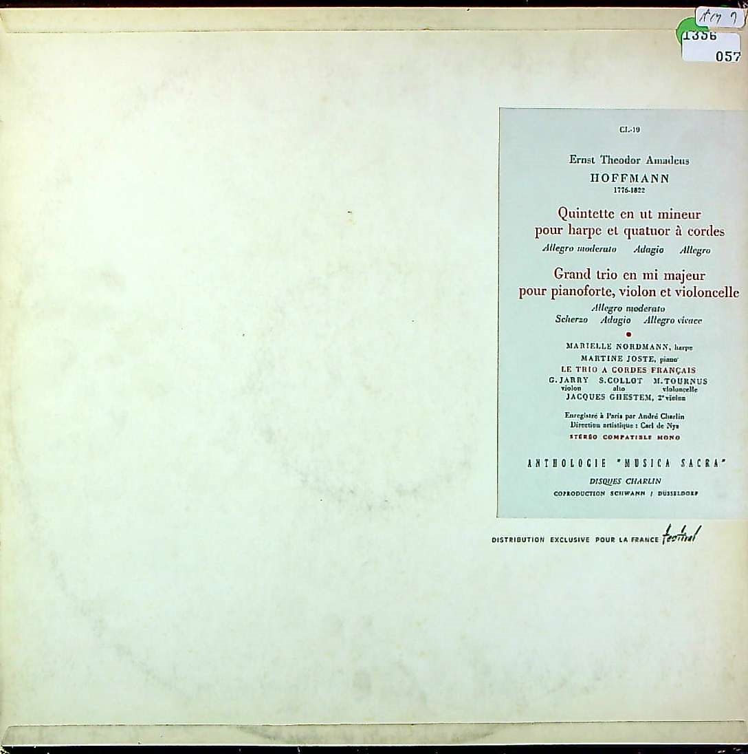 商品コード:1356-057[Charlin] M.ノルマン(hp) J.ゲステム(vn) フランス弦楽トリオ/ E.T.A.ホフマン:Hp五重奏曲, Pfトリオ