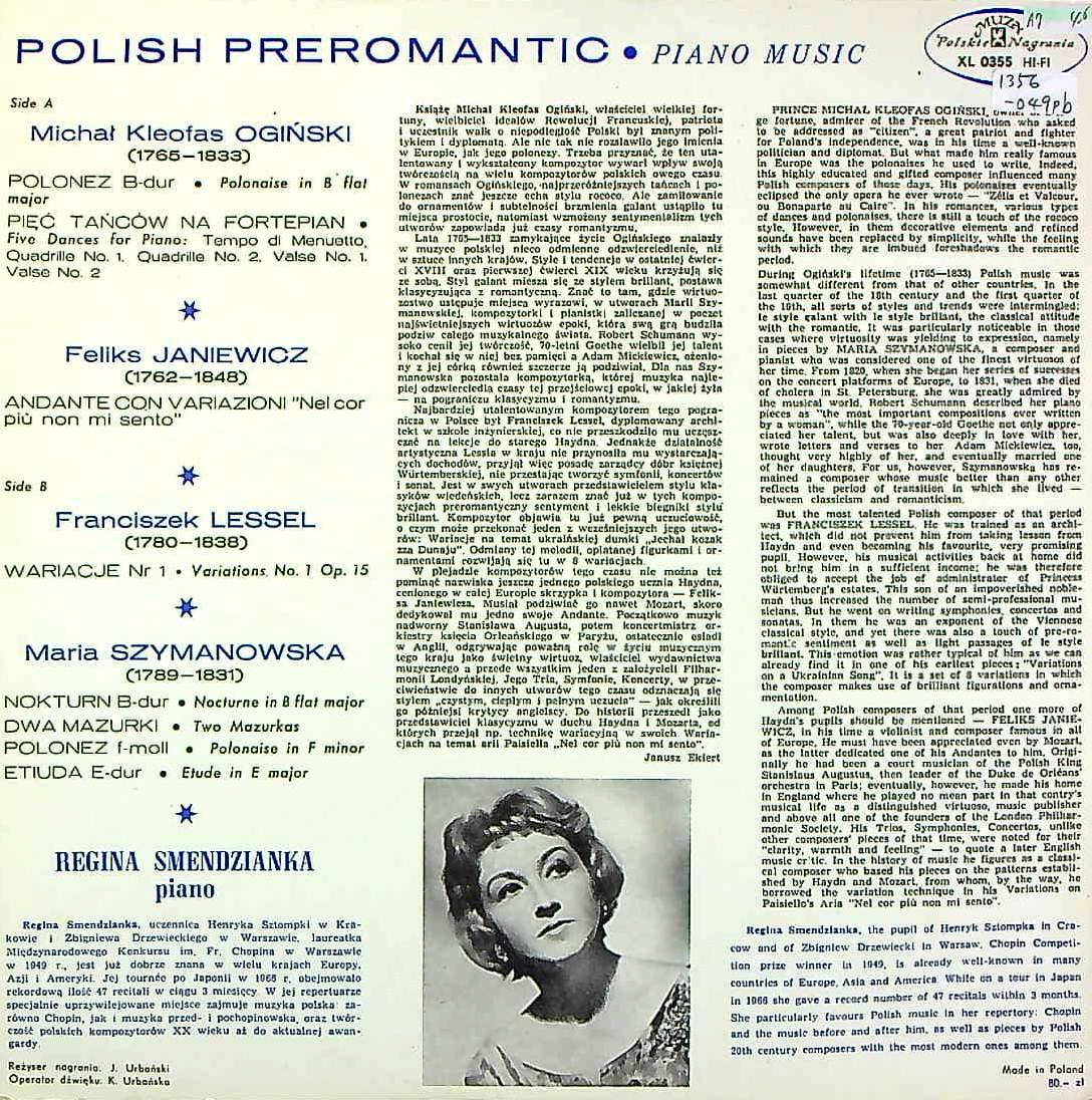 商品コード:1356-049pb[MUZA] R.スメンジャンカ(pf) / ロマン派以前のポーランドPf作品集/オギンスキ, ヤニェヴィチ, F.レッセル 他