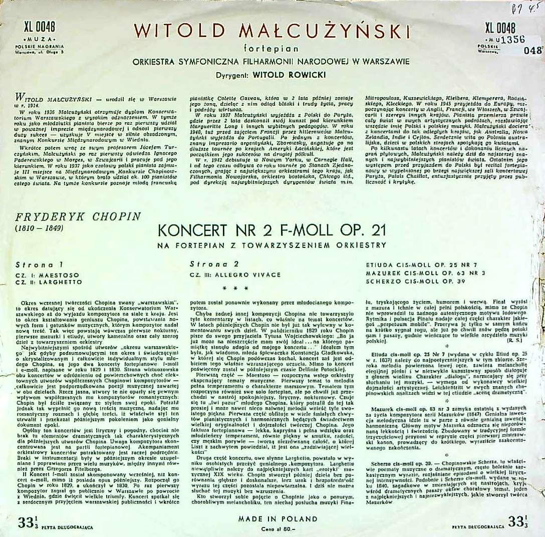 商品コード:1356-048[MUZA] W.マウツジンスキ(pf)/ ショパン:Pf作品集/Pf協奏曲2番 他