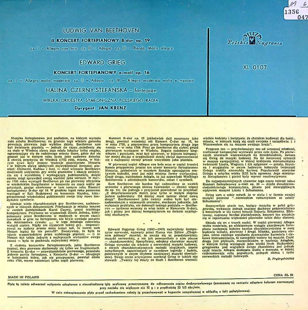 商品コード:1356-047[MUZA] H.チェルニー・ステファンスカ(pf)/ Pf協奏曲/ベートーヴェン:2番, グリーグ