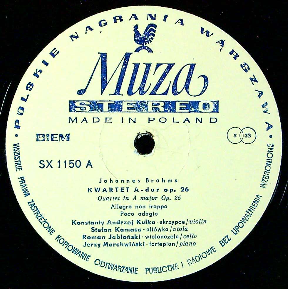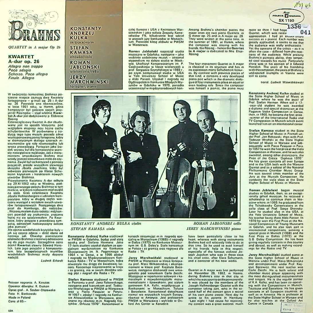 商品コード:1356-041n[MUZA] J.マルフヴィニスキ(pf) K.A.クルカ(vn) S.カマサ(va) R.ヤブウォニスキ(vc) / ブラームス:Pf四重奏曲2番