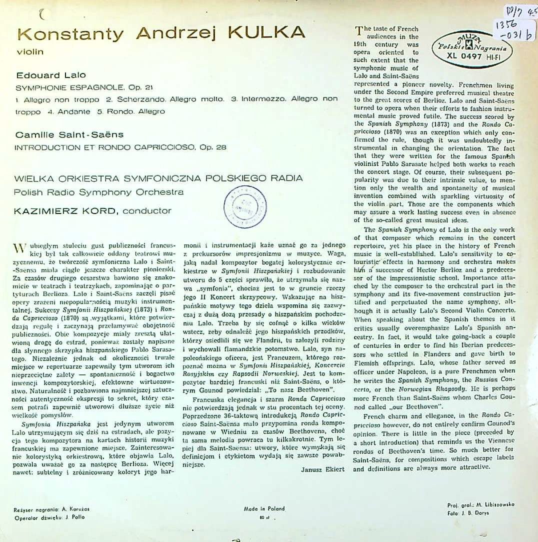 商品コード:1356-031b[MUZA] K.A.クルカ(vn)/ ラロ:スペイン交響曲, サン・サーンス:序奏とロンド・カプリッチョーソ