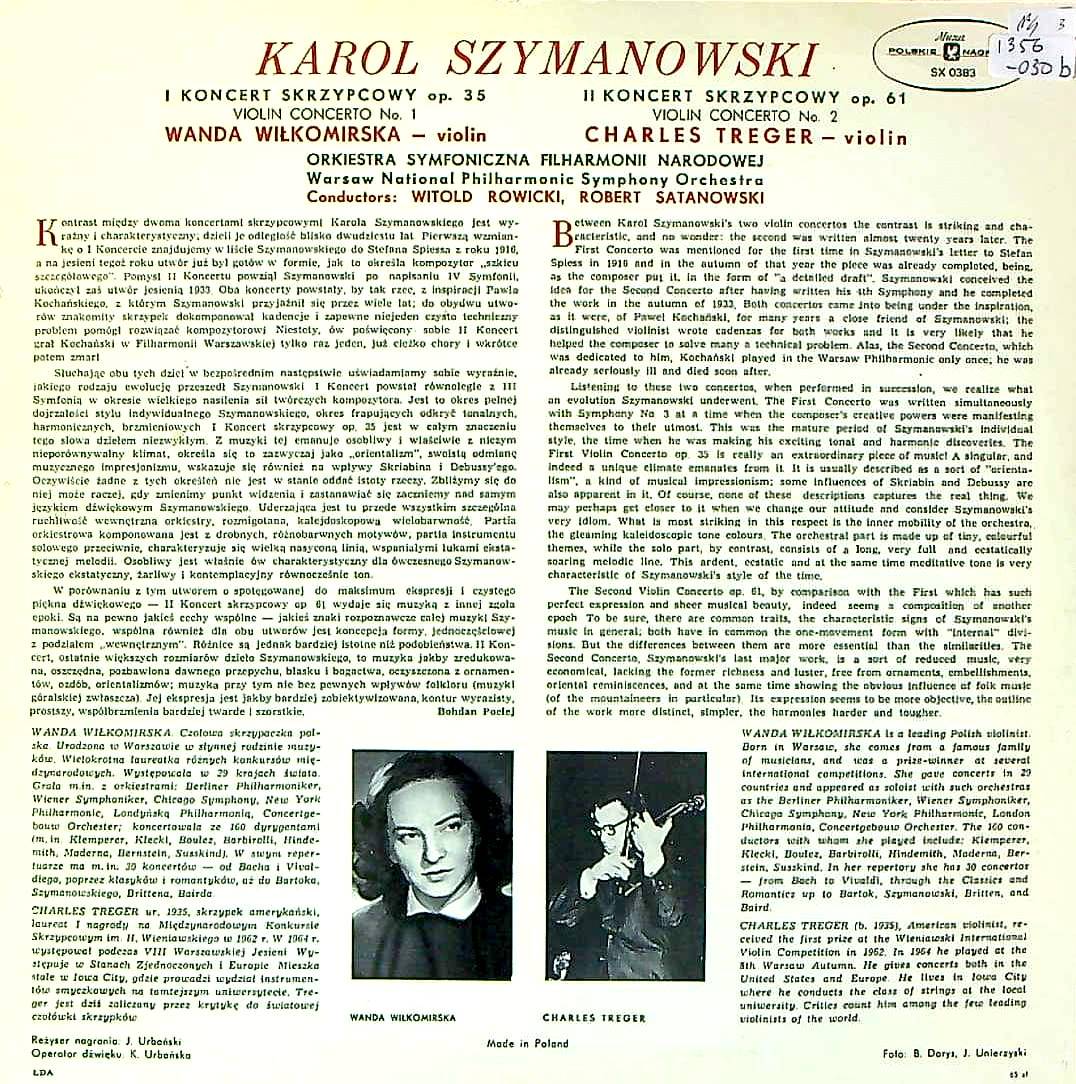 商品コード:1356-030b[MUZA] W.ウィウコミルスカ/C.トレーガー(vn)/ シマノフスキ:Vn協奏曲1番, 2番