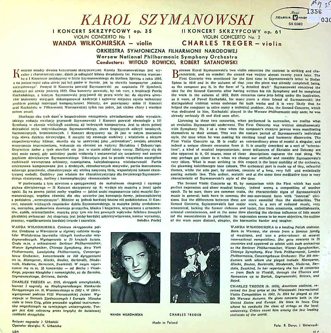 商品コード:1356-030[MUZA] W.ウィウコミルスカ/C.トレーガー(vn)/ シマノフスキ:Vn協奏曲1番, 2番