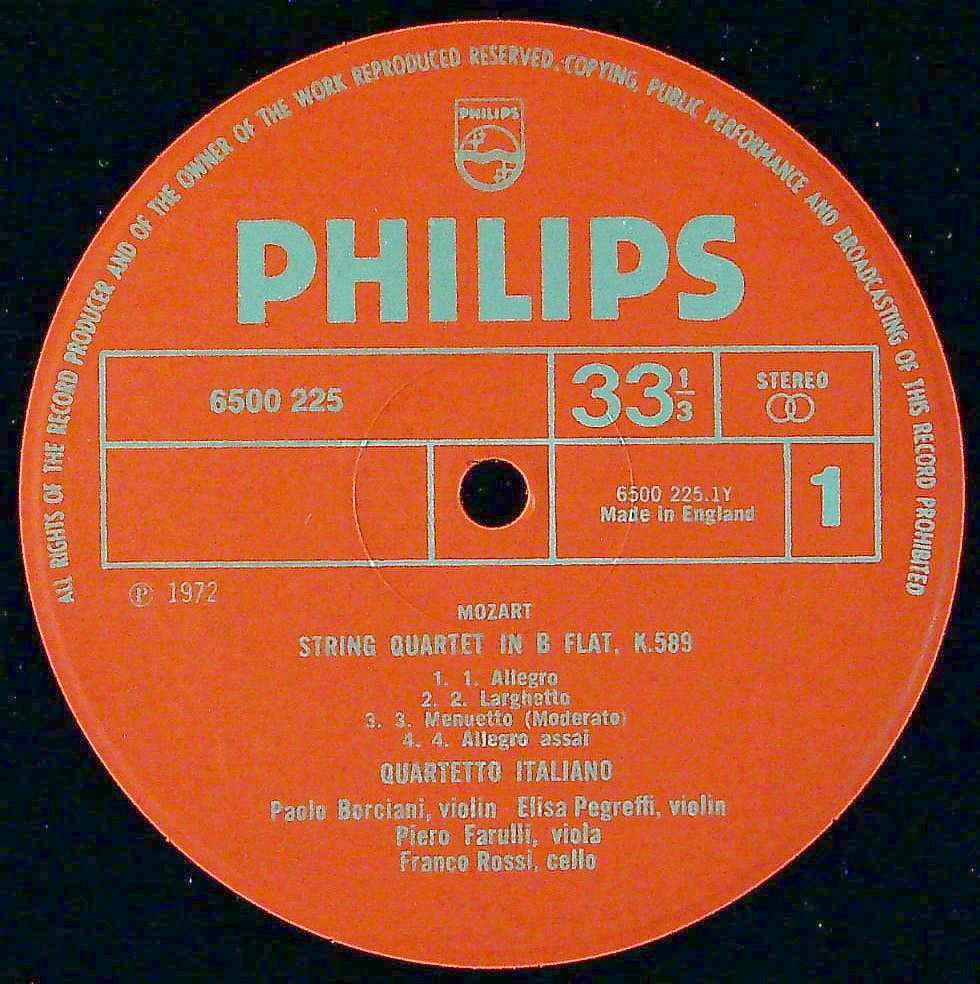 商品コード:1356-021[PHILIPS] イタリアQt. / モーツァルト:弦楽四重奏曲全集-4/弦楽四重奏曲22番K.589, 23番K.590