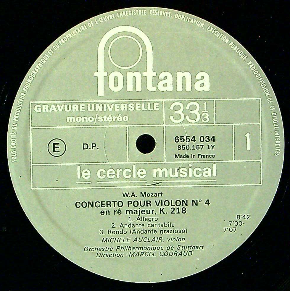 商品コード:1356-018[FONTANA] M.オークレール(vn)/ モーツァルト:Vn協奏曲4番K.218, 5番K.219
