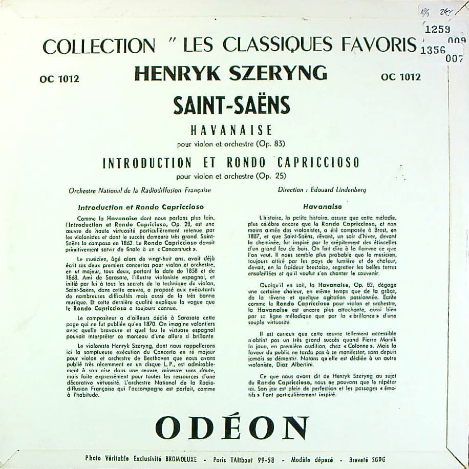商品コード:1356-007[ODÉON] H.シェリング(vn) / サン・サーンス:ハバネラ, 序奏とロンド・カプリチオーソ