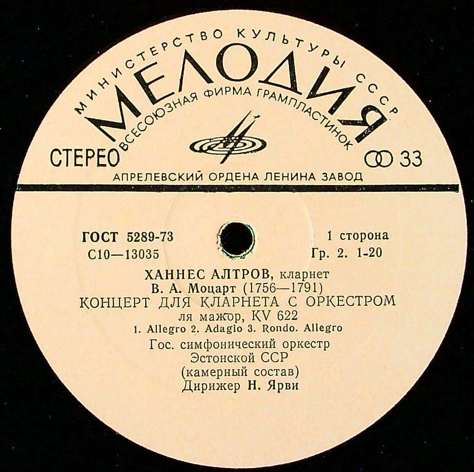 商品コード:REG-3871t[露MELODIYA] H.アルトロフ(cl)/ 「ハンネス・アルトロフ・Cl演奏集」モーツァルト, ドビュッシー, サン・サーンス