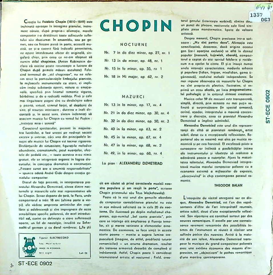 商品コード:1357-063n[Electrecord] A.デメトリアド(pf) / ショパン作品集/夜想曲(4曲), マズルカ(7曲)