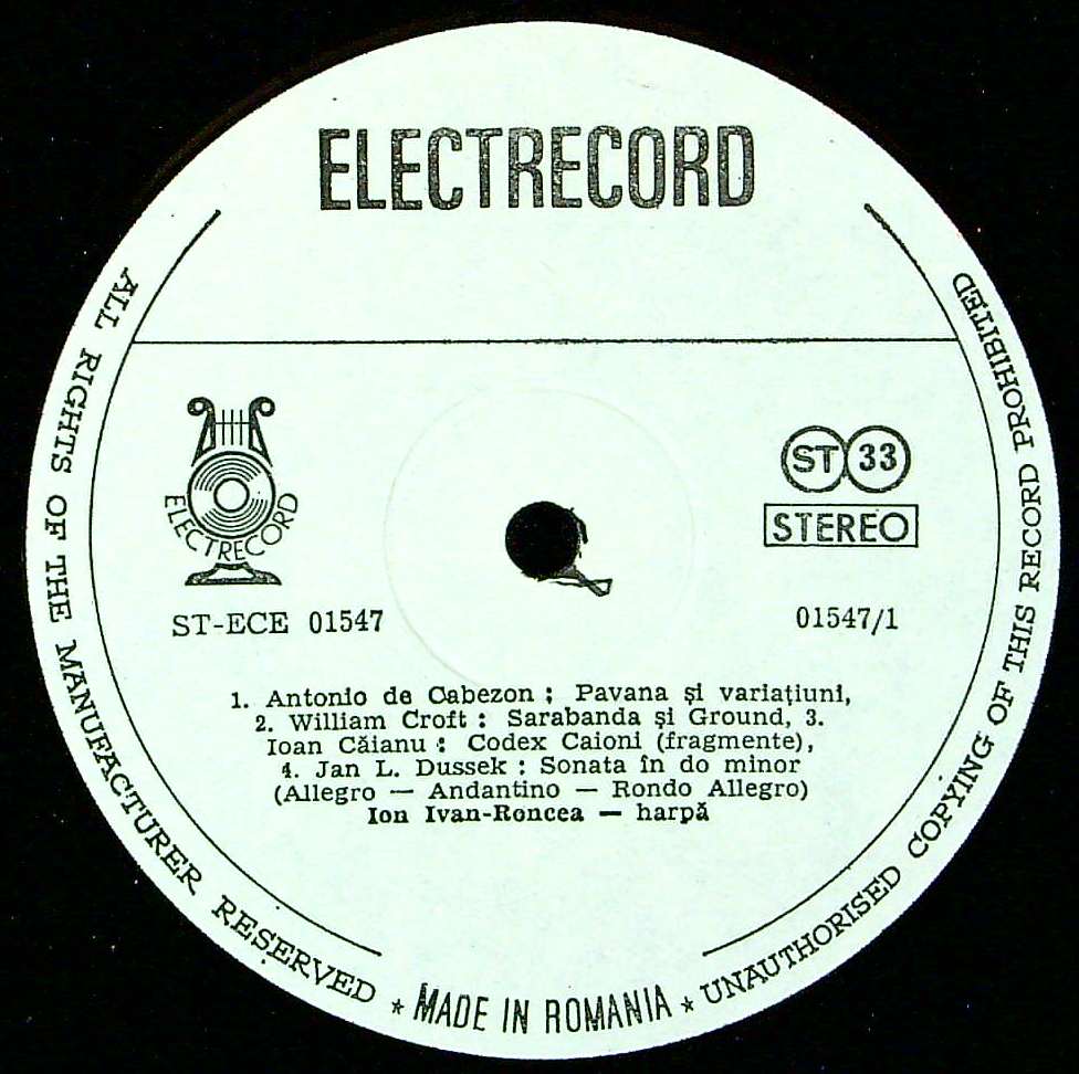 商品コード:1357-062n[Electrecord] I.イヴァン・ロンセア(hp)/ Hp編曲集/カベソン, W.クロフト, I.カヤノー, ドゥシーク, コレッリ 他