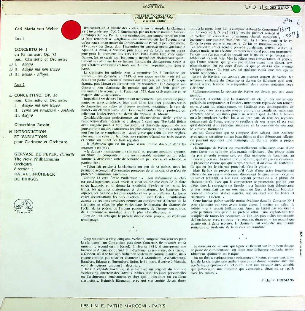 商品コード:1357-037b[VSM] G.d.ペイエ(cl)/ Cl作品集/ウェーバー, ウェーバー, ロッシーニ