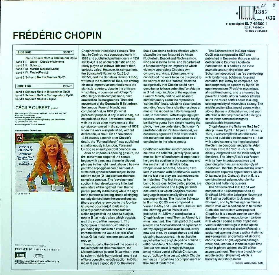 商品コード:1357-036[HMV] C.ウーセ(pf) / ショパン:Pf作品集-1/Pfソナタ2番, スケルツォ第1番, 2番, 3番, 4番