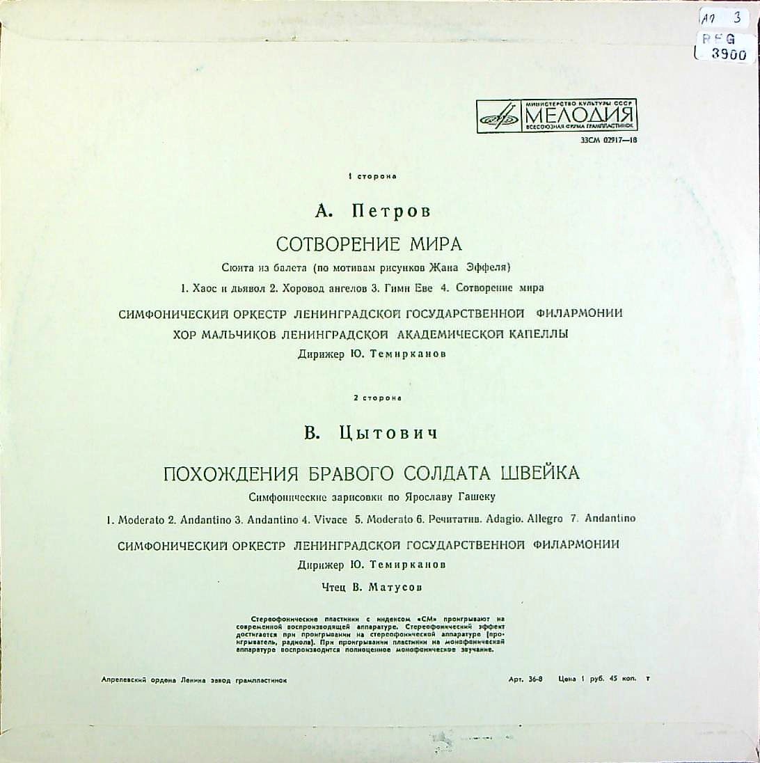 商品コード:REG-3900[露MELODIYA] Y.テミルカーノフ/ ペトロフ:バレエ音楽「天地創造」, ツィトビッチ:勇敢な兵士シュヴァイクの旅 他