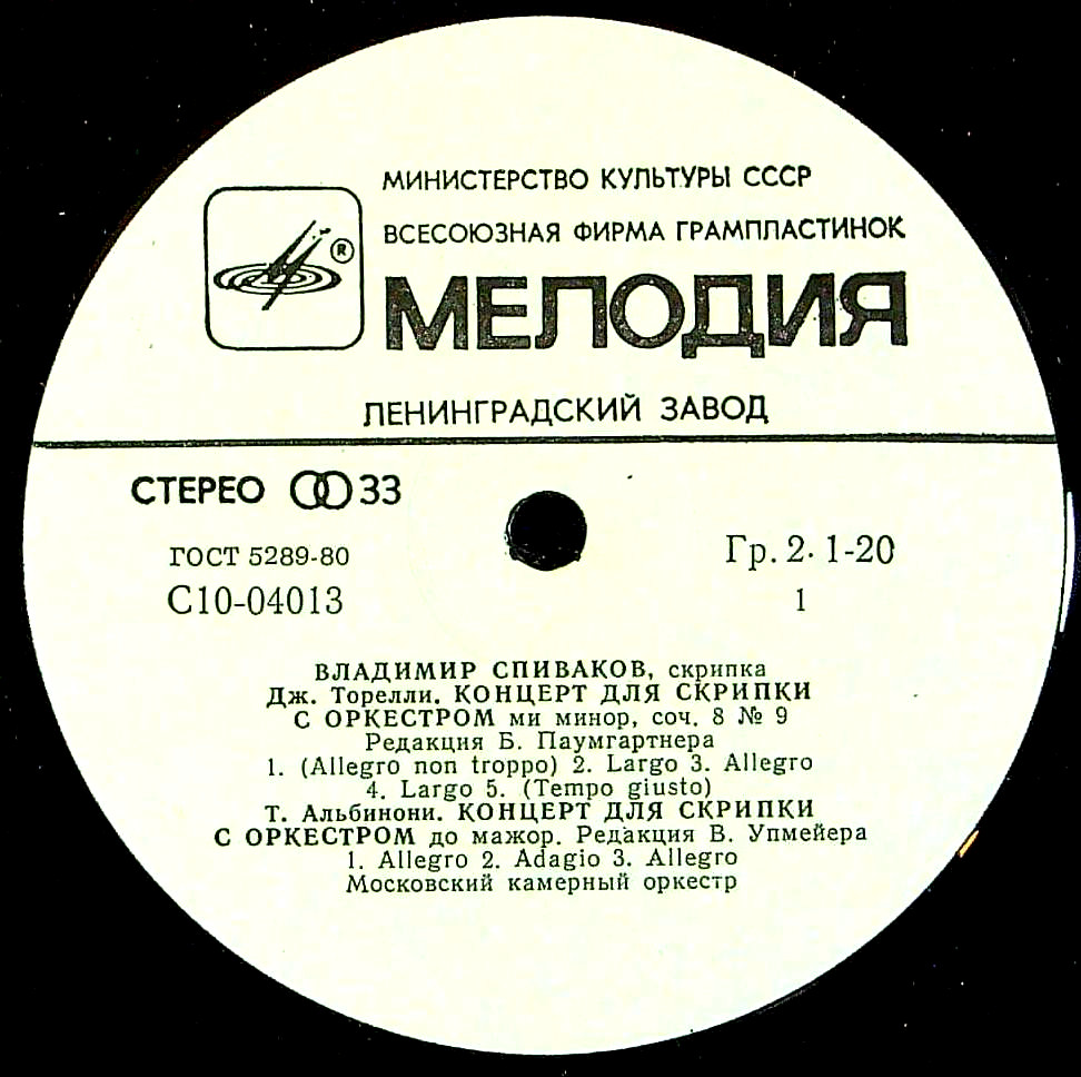 商品コード:REG-3894[露MELODIYA] V.スピヴァコフ(vn)/ 「Vn協奏曲集」トレッリ, アルビノーニ, ハイドン