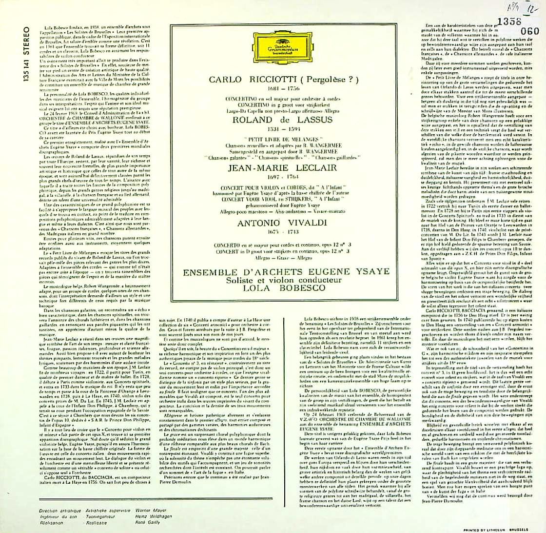 商品コード:1358-060[DGG] L.ボベスク(vn)/ バロック作品集/リッチョッティ, ラッソ, ルクレール, ヴィヴァルディ