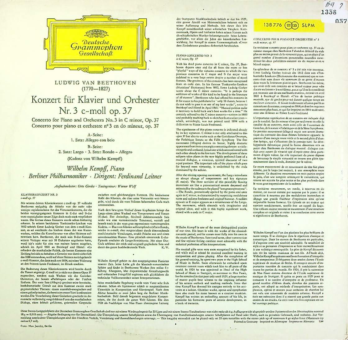 商品コード:1358-057[DGG] W.ケンプ(pf) F.ライトナー/ ベートーヴェン:Pf協奏曲3番