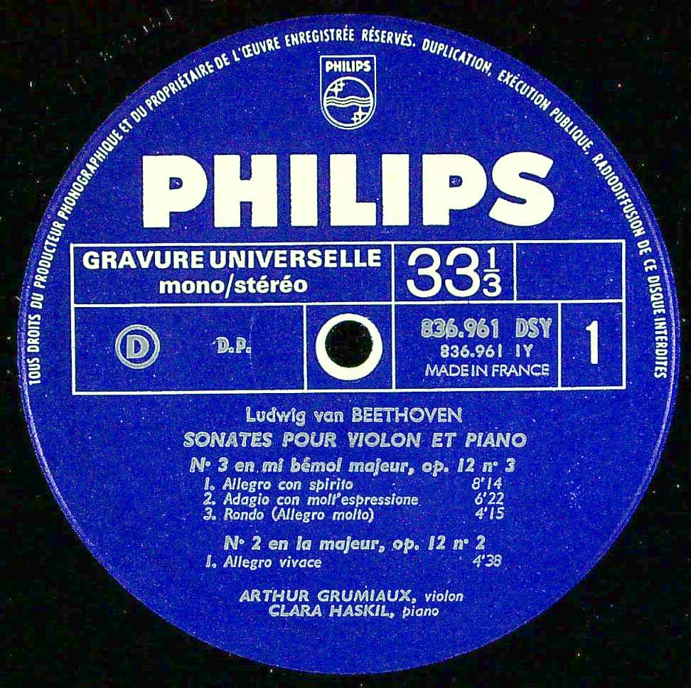 商品コード:1358-044[PHILIPS] A.グリュミオー(vn) C.ハスキル(pf) / ベートーヴェン:Vnソナタ全集(全10曲)