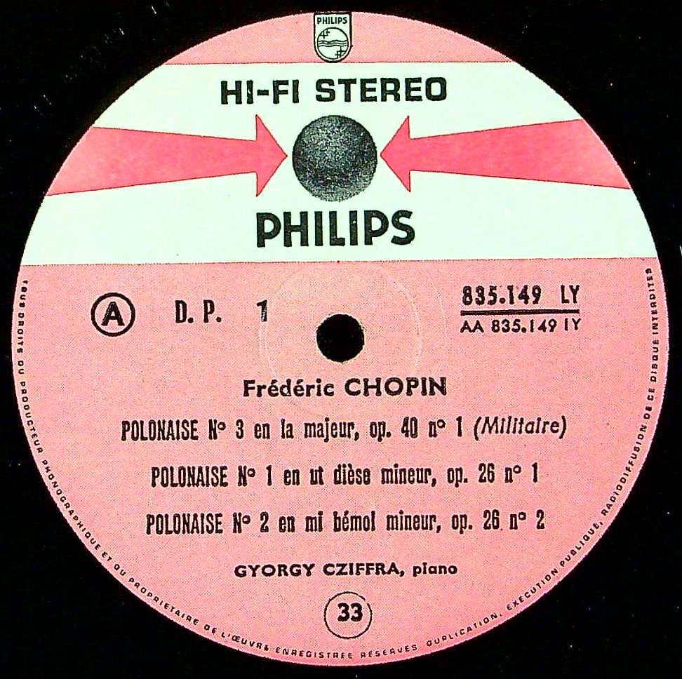 商品コード:1358-034[PHILIPS] G.シフラ(pf) / ショパン:ポロネーズ集/ポロネーズ1~6番