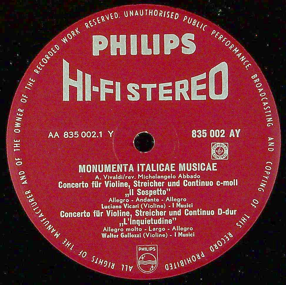 商品コード:1358-029[PHILIPS] イ・ムジチ合奏団/ ヴィヴァルディ:Vn協奏曲RV.199「疑い」, RV.234「不安」, Rv.271「恋人」, Rv.270 「休息」