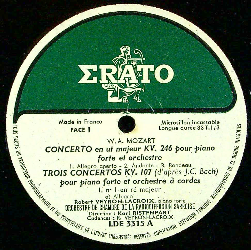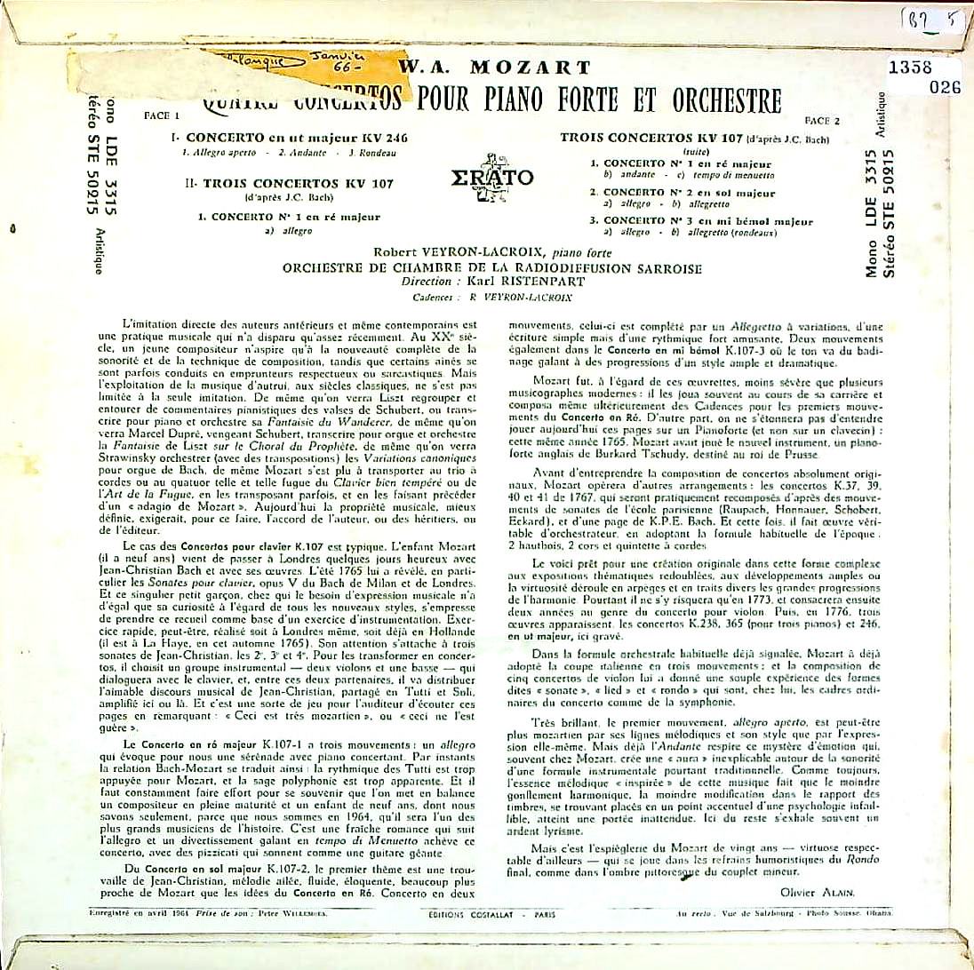 商品コード:1358-026[ERATO] R.ヴェイロン・ラクロワ(pf)/ モーツァルト:Pf協奏曲8番K.246, 3つのPf協奏曲K.107