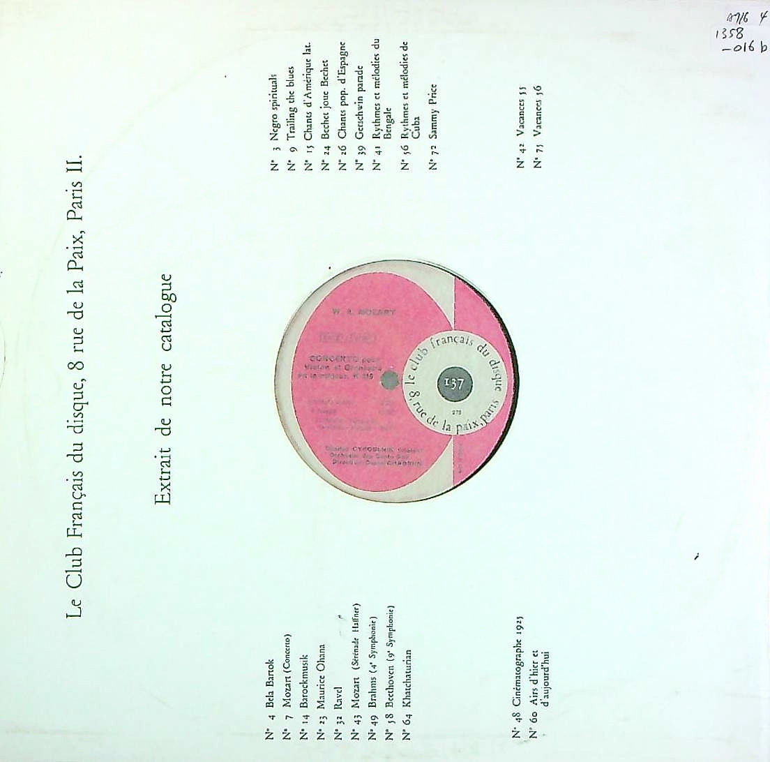 商品コード:1358-016b[Club Français] C.シルルニク(vn)/ モーツァルト:Vn協奏曲7番K.271a, 5番K.219「トルコ風」