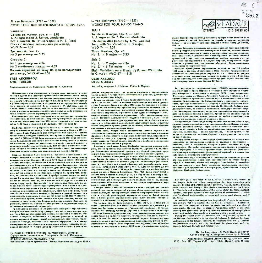 商品コード:REG-3917[露MELODIYA] G.アクセルロート, O.グレボフ(pf) / 「ベートーヴェン:Pf連弾作品集」