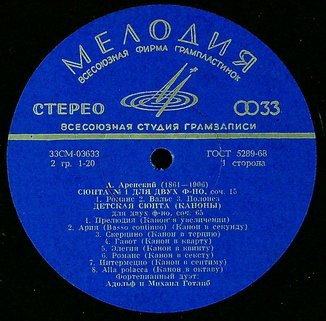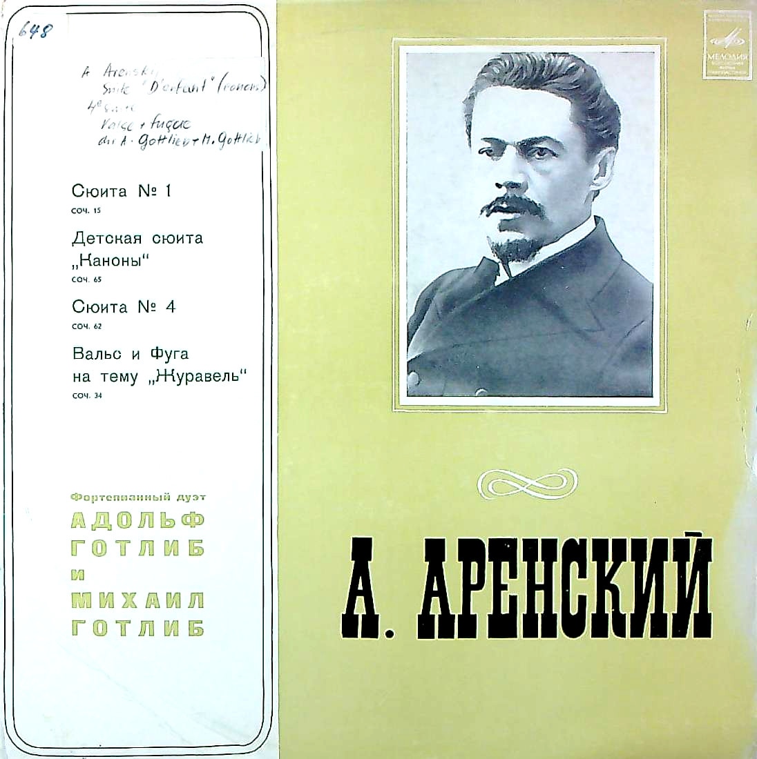 商品コード:REG-3915[露MELODIYA] A.ゴットリーブ, M.ゴットリーブ(pf) / アレンスキー: 2台Pfのための組曲1番, 4番 他