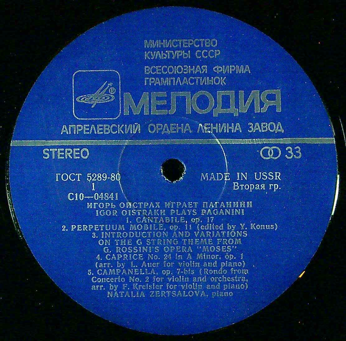 トピックス:紺/銀ゴシックGG, 紙, (C)1974/75, '70年代プレス, ピアノはオイストラフ夫人, GOST-80, 再版, SLレーベル存在する